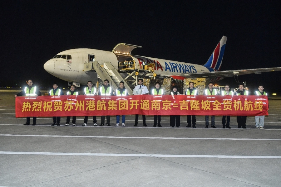 11月30日凌晨04:40,一架载有40吨集成电路、电子类产品及跨境电商货品的波音767全货机从南京禄口机场起飞,经5.5小时飞行后抵达吉隆坡,标志着南京⇌吉隆坡全货机航线正式开通运行。该航线由苏州港航集团负责承运,每周3班(班期为每周三、五、七)。