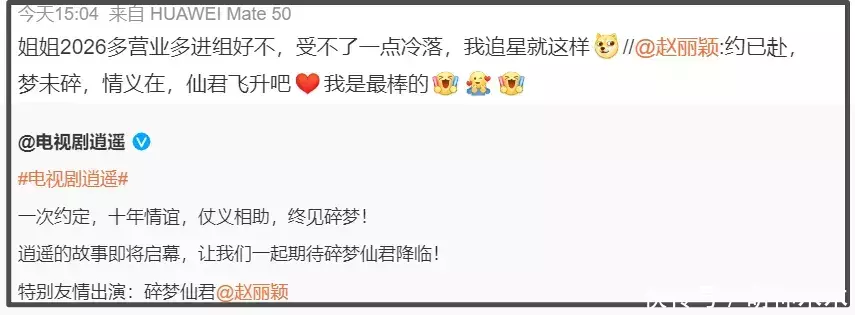不过赵丽颖能够客串《逍遥》,也是因为人情世故,《逍遥》的导演是徐纪周,导演过《狂飙》、《特战荣耀》等剧集,而他和赵丽颖合作过电视剧《胭脂》,二人约定了未来还要合作,结果一等就等了十年。