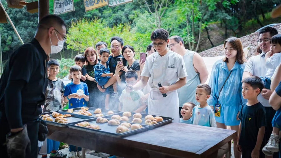 美食是莫干山的特色。今年5月底,来自上海的创业者潘仁恭在莫干山开设的面包坊开始营业。为还原面包最质朴的风味,潘仁恭特地定制了一座白柴窑,采用传统柴火烘焙工艺进行制作。“这是目前莫干山最大的白窑炉,一次可以烤12盘,每天我们清早开始准备,上午出炉、下午快递发货。”她介绍,目前面包多销往上海,现做现发,次日即可送达。