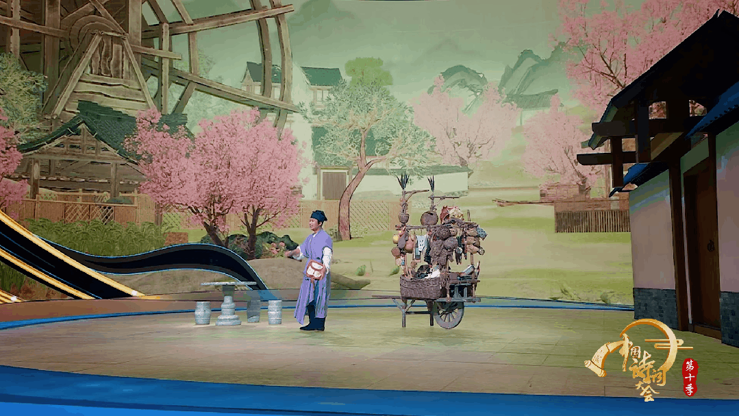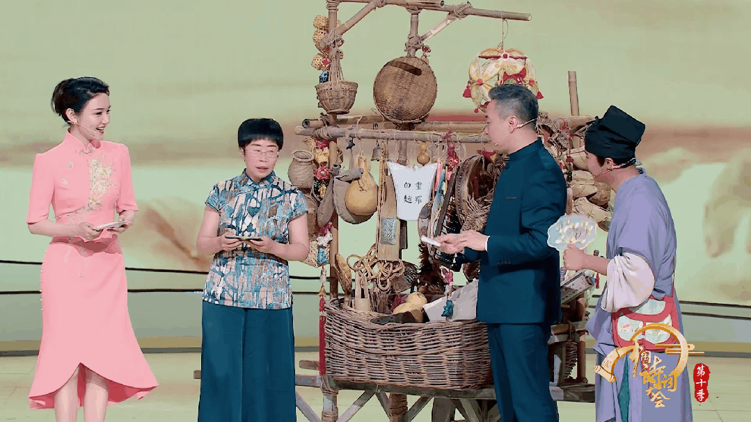 备受喜爱的情景题环节。观众随货郎穿梭古今,在笑声中理解“悬壶济世”“傅粉高楼中”等典故出处。随着选手答题,评委进行深度解读,文化的记忆在对话、互动与即兴之间被重新点燃。