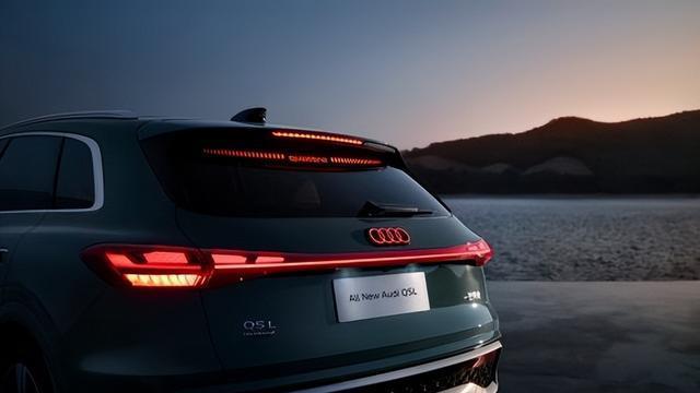 SUV车型的尾部设计常常面临“笨重感”的挑战。全新奥迪Q5L的解决方案是复刻了2010年A7 Sportback广受赞誉的“船尾式设计”。从后窗延伸至尾灯组的宽阔横向平面,横贯整个车宽,形成了一个开阔且极具张力的视觉表面,瞬间提升了尾部的档次感与轻盈感。雕塑化光带的应用强化了视觉统一性。宽幅尾喉上方集成了独立的悬浮式扩散器,以“岛屿”造型嵌入高耸的后保险杠,形成视觉焦点,彰显其卓尔不凡的性能底蕴。值得一提的是,新车保留了双边单出的真排气设计,这不仅是对其燃油车身份的明确宣示,更是一种不可或缺的性能象征。从精心设计的车底气帘到功能性的扰流尾翼,每一处细节都旨在优化空气动力学,实现更低风阻、更高静谧性与更稳健的驾控体验。