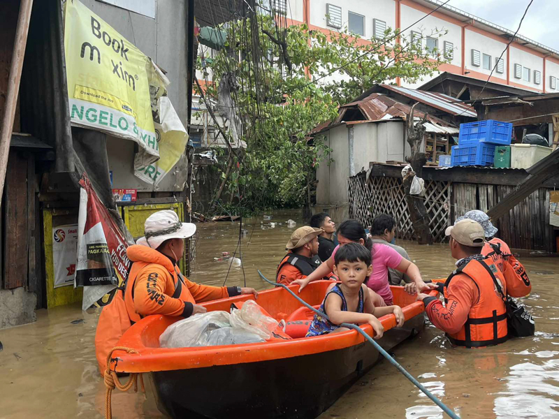 11月4日,在菲律宾宿务省,救援人员帮助受灾居民撤离。