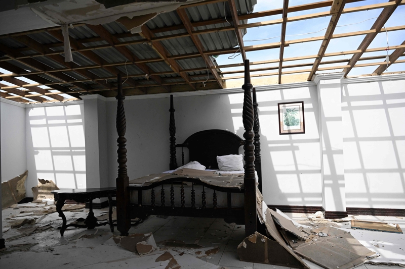 这是11月3日在牙买加蒙特哥贝拍摄的被飓风损坏的房屋。