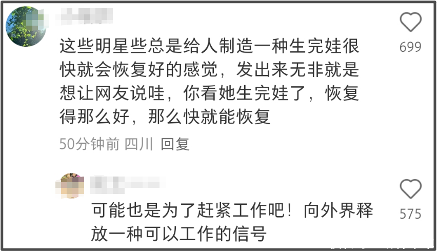 不过,有网友认为何穗不应该刻意展示身材,容易引起普通人身材焦虑,传递出女性生育后也能保持好身材的错觉。何穗是模特,生产结束几个月,保持好身材也是释放复出的信号,毕竟模特的工作就是看身材状态,所以不建议普通人把何穗当学习对象。
