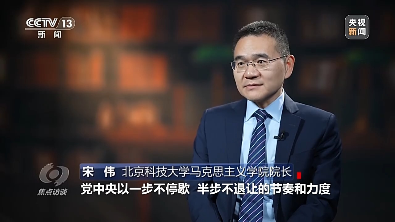 北京科技大学马克思主义学院院长 宋伟:过去一年当中,党中央以一步不停歇、半步不退让的节奏和力度,深入推进全面从严治党。一方面,在2025年全党上下开展了深入贯彻中央八项规定精神的学习教育;还有一方面,过去一年党中央着力推动风腐同查同治。